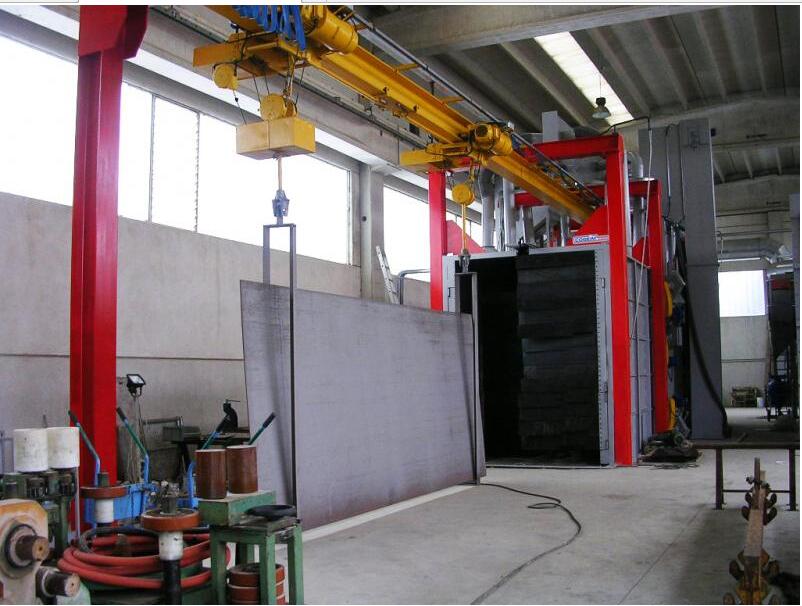 一般鑄造廠使用的拋丸機可處理表麵溫度高達100℃左右的鑄件。在這樣的溫度下,就不適宜用橡膠履帶輸送式拋丸機,而要選擇用鋼履帶式或錳鋼履帶輸送式拋丸機。再高的溫度,如高達175℃, 時,就必須輔以特殊耐高溫的密封,幕簾和提升機履帶。